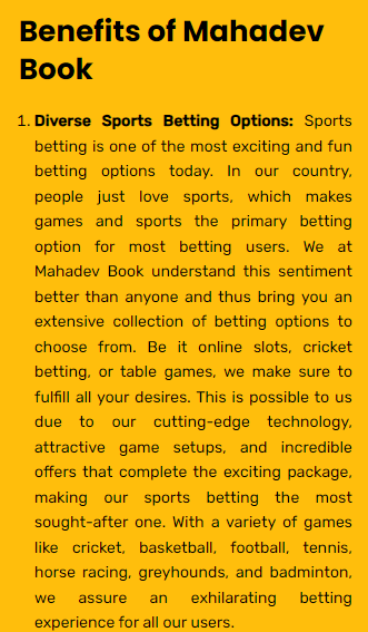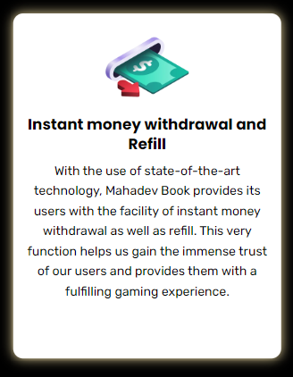 - Exciting Casino Games: A vast range of casino games are designed to captivate and lead the bettors to joy and amusement. There is never a dull moment for the ardent online bettors at Mahadev Booki, they can explore from classics like roulette and blackjack to the most advanced slot and live dealer games.