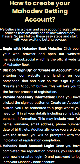 Here is the step by step procedure involved in the Mahadev Booki signup.